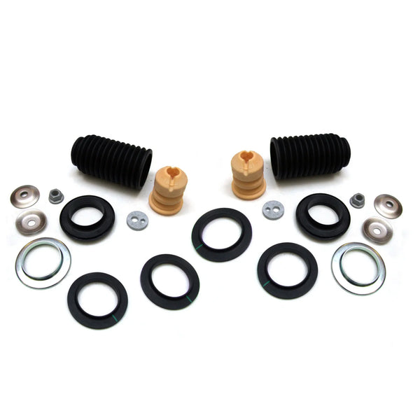 Kompletter Überholungssatz für die vordere Stoßdämpferbefestigung des Porsche 964 C2/C4. Preis gilt für beide Seiten. Enthält alle relevanten Komponenten inklusive Balg, Anschlagpuffer, Stütz- und Ausgleichsplatten sowie Montagekleinteile.