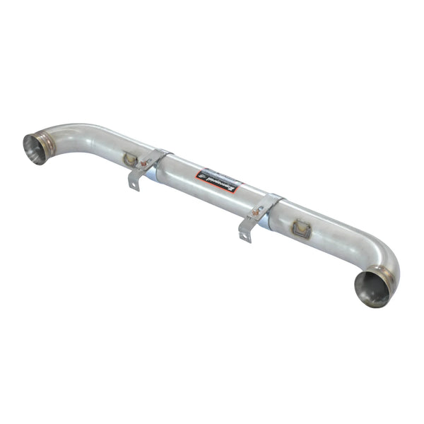 Mittelrohr aus Edelstahl von Supersprint, passend für alle Porsche 911 Carrera 2 und Carrera 4 der 964-Baureihe mit 3.6-Liter-Motor. Das Mittelrohr ist vollständig aus Edelstahl gefertigt und kompatibel mit dem serienmäßigen Katalysator, sodass es sich direkt in das werkseitige Abgassystem integrieren lässt.